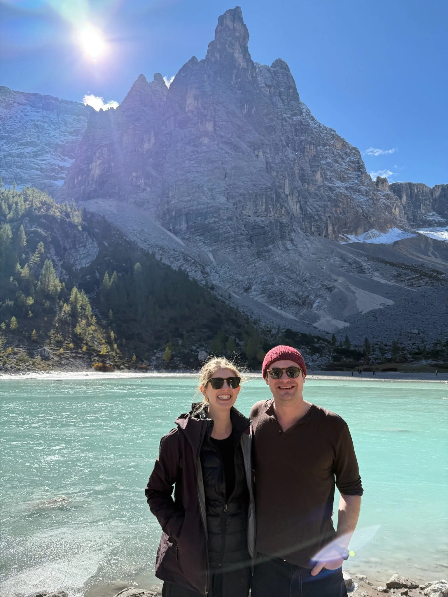 Our next stop was Cortina d’Ampezzo in the Dolomites, home of the upcoming 2026 Olympics. The surrounding alps are just breathtaking, with the jagged limestone peaks piercing through the fluffy white clouds. As Tom’s birthday present, I splurged on a stay at the Rosapetra Spa Resort, a really special 5-star hotel that feels modern and cozy at the same time. We had a welcome spritz on the terrace overlooking the mountains, then dinner at Il Vizietto, where I basically continued my trip-mandated cheese-and-bread diet with a delicious bowl of cacio e pepe. We followed dinner with dessert and amari across the street at The Roof Cortina. Tom got his beloved Amaro Braulio, fittingly from the other side of the Italian Alps, and I got a pour of my trusty Amaro Montenegro, which was served over a big ice cube with an orange twist, a pleasant surprise!