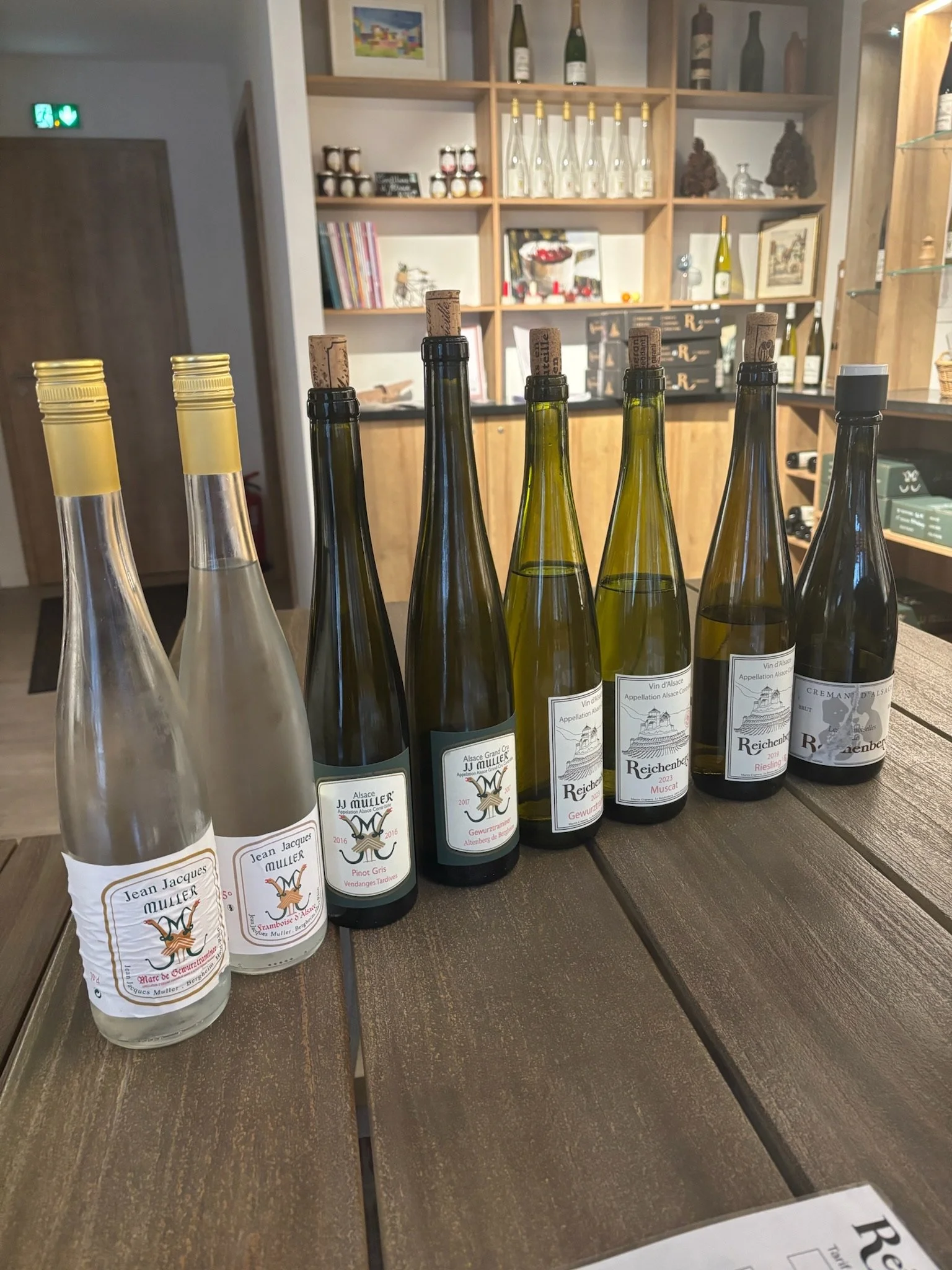 line up of wines and eau-de-vie at Reichenberg