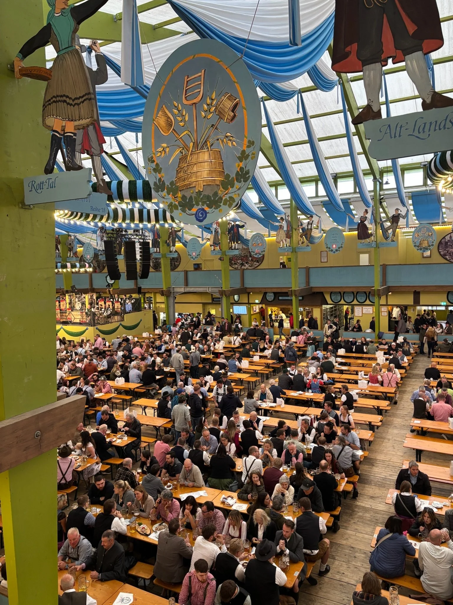 There’s really only one beer option at Oktoberfest, the Festbier, even though different breweries have their own tents. It’s a pale lager that is the platonic ideal of a regular-ass beer. Servers in Dirndls or Lederhosen walk around and basically are just like: “bier?” and if you say “ja,” you get a liter of Festbier for €15. (Most of the stalls and rides take credit cards, but the beer halls only take cash.) There’s plenty of food too, in the form of food stalls or beer hall menus, and I consumed so much pretzel I basically became one. There was a point I was carrying one around in my pocket that I called my “emotional support pretzel.” We had a blast, and by 6pm we were spent.
